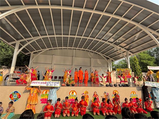 The Junior Wing celebrated the festival of lights — Diwali — with great enthusiasm and joy. The celebration began with a melodious choir performance that filled the atmosphere with festive spirit. This was followed by a beautiful depiction of the Ramayan, presented by the tiny tots of Classes I to V. The young students brought alive the characters and scenes with great energy and innocence, making the performance truly delightful.