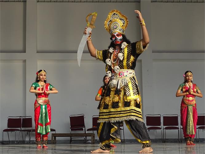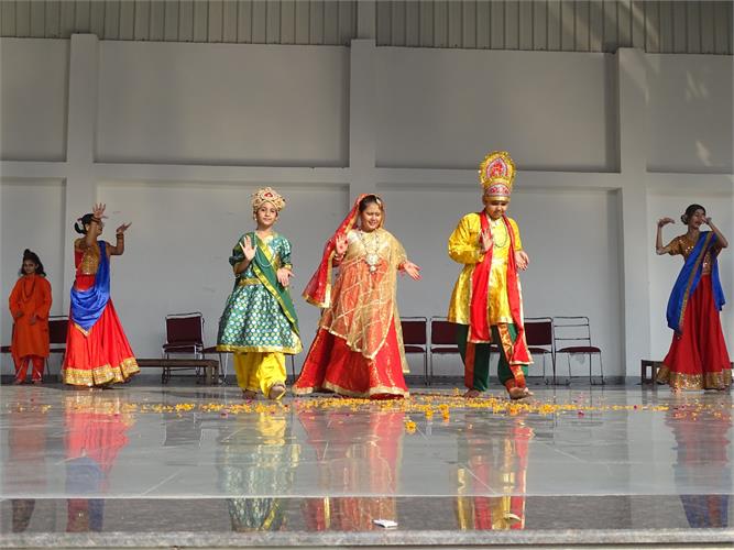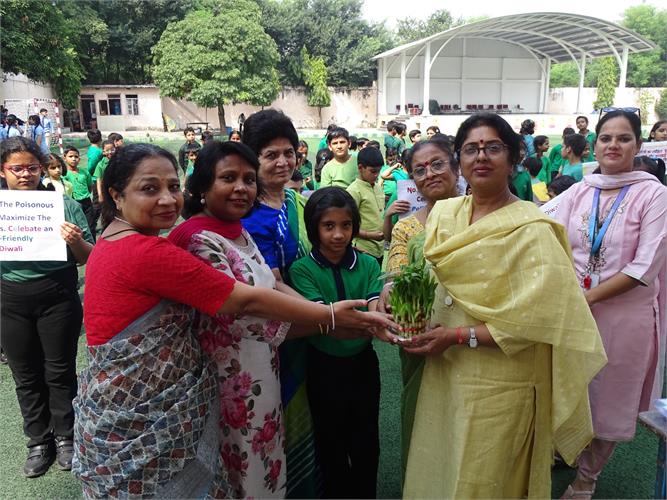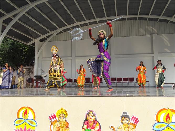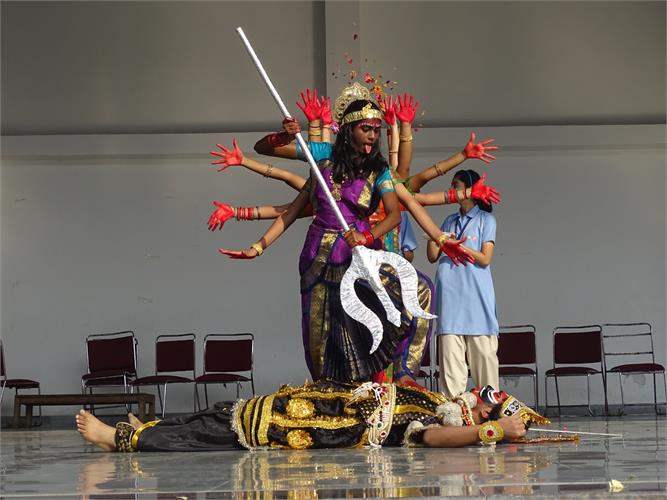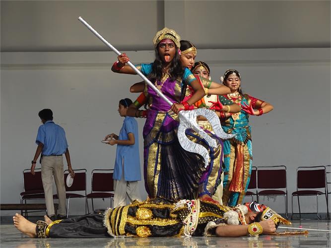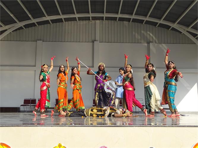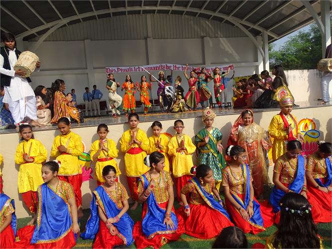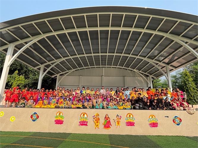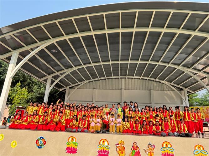 he Senior Wing celebrated the festival of lights — Diwali — with great zeal and devotion. The celebration commenced with a soulful choir performance that set the tone for the auspicious occasion. This was followed by a graceful depiction of various Mata and Devis, symbolizing the triumph of good over evil and the divine power of positivity. The students of Classes VI to XII presented an impressive enactment, showcasing their talent, confidence, and understanding of cultural traditions.An Oath Ceremony was also conducted, where students pledged to celebrate a clean, green, and safe Diwali by saying no to crackers and promoting harmony and care for the environment.To add to the festive spirit, a Rangoli Competition was organized, where students showcased their creativity and artistic skills through beautiful and vibrant designs, spreading colours of joy and positivity all around.