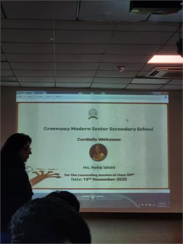 Class 12th  is often the time for making one the biggest decisions in life - to opt for a right career. To help students find and pursue a profession, a career counseling session was conducted on 19th November 2025 in the school auditorium.  The session was hosted by a renowned counselor Ms. Neha Wahi  who started off the session with an active interaction. She explained about the various fields that shall thrive in the future by relating it with the modern world. Her sessions not only provided a personalized guidance and assess one's interests and traits but also helped identify the potential career paths that align with their goals and aspirations. It was a very fruitful session as many students could ask various queries and finalize their decisions.