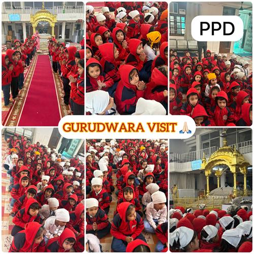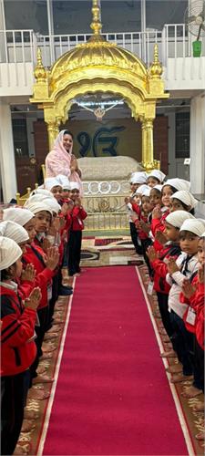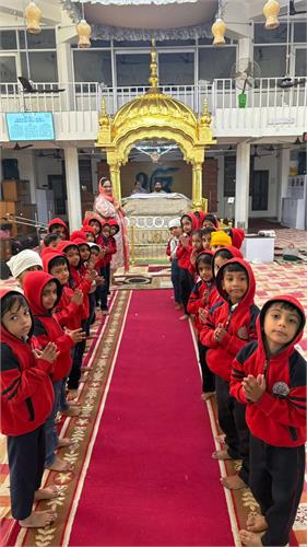 The Nursery and Kg students had a wonderful and peaceful experience during their visit to the Gurudwara. The visit was organized to help the children learn about different places of worship and understand the values of love, equality, and service.As soon as the children reached the Gurudwara, they were warmly welcomed by the sewadars (helpers). The students covered their heads before entering the main prayer hall, learning the importance of respect and cleanliness in the holy place. Inside, they listened to the soothing shabad kirtan (holy hymns) that created a calm and peaceful atmosphere.The children also bowed down in front of Guru Granth Sahib Ji, the holy book of the Sikhs. They learned that the Gurudwara is a place open to everyone, regardless of religion, caste, or background.After the prayer session, the little ones were given Kada Prasad and toffees.It was a memorable day full of learning and joy. The visit helped the students understand the importance of kindness, humility, and togetherness — values that the Gurudwara beautifully teaches.